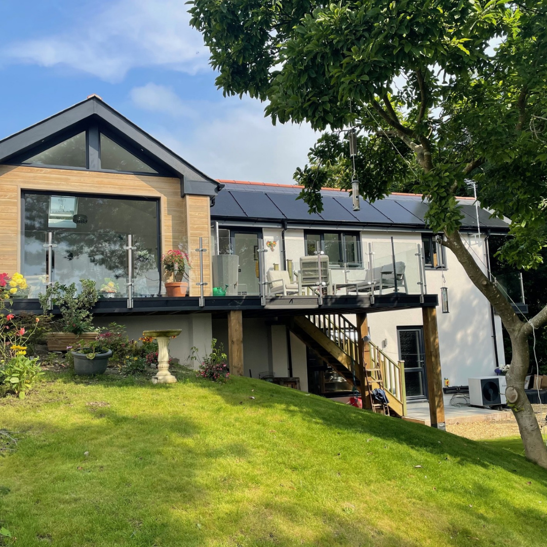 A new build property was constructed adjacent to an existing stone garden wall, presenting unique structural challenges. The client desired a part-basement level and a vaulted roof with cantilevered sections.